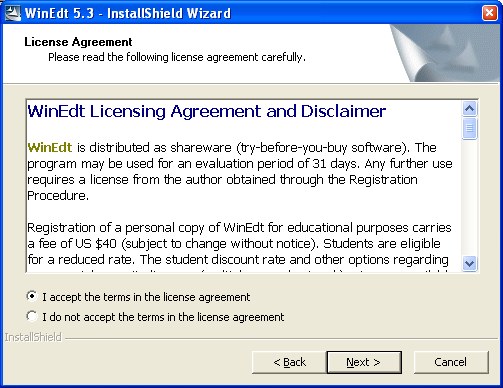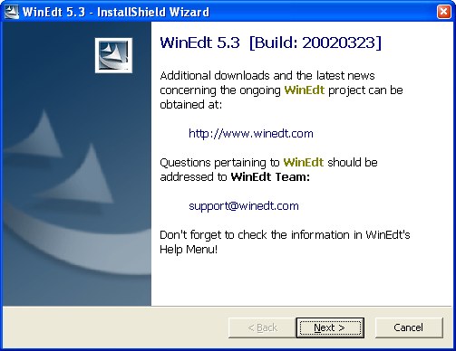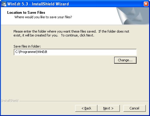 3. "Yes" anklicken und es wird angezeigt, in welchem Verzeichnis WinEdt installiert wird: